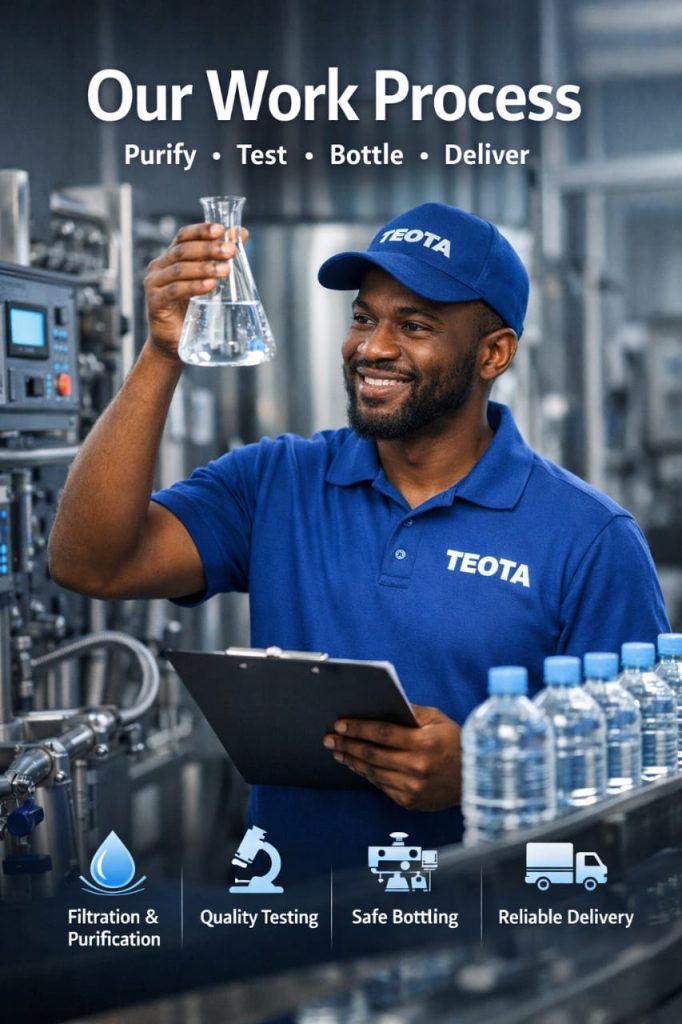 At Badore Pure Water, our strength lies in our dedicated and highly trained team. From water treatment specialists to quality control officers and distribution personnel, every member is committed to delivering clean, safe and hygienically processed drinking water.